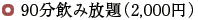 - 生ビール/焼酎/日本酒/ウーロン茶/ウィスキー