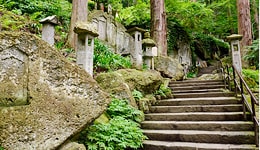 자오 온천 ➡ 야마가타 역 ⇒ 야마데라 역 → 야마데라 절(곤폰추도·고다이도·오쿠노인 불당) → 야마데라 절 ⇒ 야마가타 역 ➡ 자오 온천