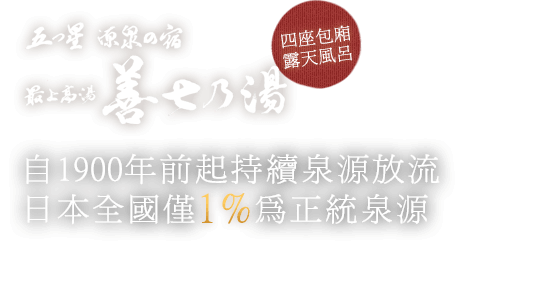 大平飯店的溫泉是自1900年前起, 持續自動湧出的乳白色強酸性溫泉,且為100%放流泉源。 日本全國約14,000間溫泉旅館當中,100%放流泉源僅有1%。 歡迎前來享受水質新鮮的溫泉。